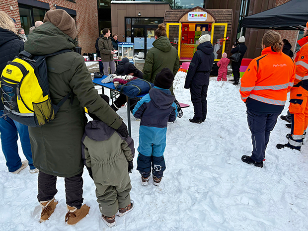 - Både små og store trodsede vinterkulden og deltog i indvielsen af det mobile Aktivitetshus. Foto: Viborg Kommune.