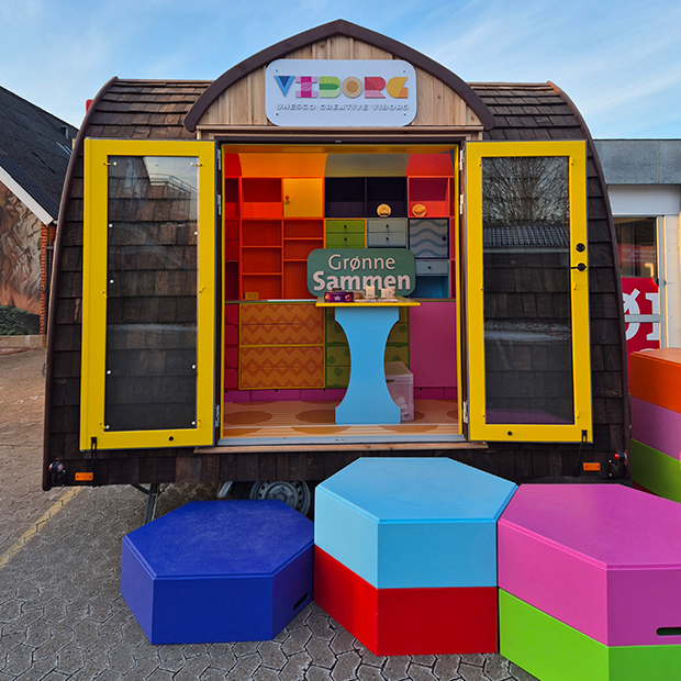 - Aktivitetshuset er et mobilt hus på hjul med fokus på børnekultur, kreativitet og klimaaktiviteter. Foto: Viborg Kommune.