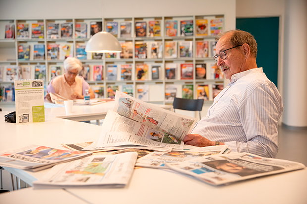 - Avislæserne på Hovedbiblioteket i Viborg. Foto: Viborg Bibliotek.