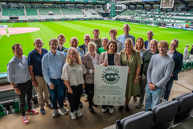 - Styregruppen bag Fælles om Fællesskaber, Børne- og Ungdomsudvalget og formænd/repræsentanter fra de deltagende organisationer. Foto: Viborg FF.