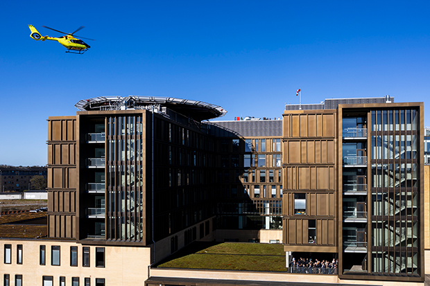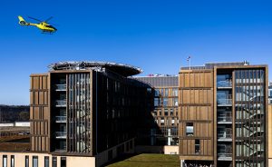 Med færdiggørelsen af helipad’en er der nu skabt direkte forbindelse fra luften og ned til hospitalets traumestuer og akutte funktioner for de tidskritiske patienter, der ankommer med akutlægehelikopteren.