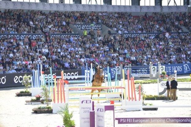 ECCO FEI World Championships Herning består af i alt fire discipliner inden for ridesport; ridebanespringning, dressur, voltigering og paradressur. Her et glimt fra den store springbane, der er anlagt på MCH Arena fra Europamesterskaberne i 2013, FC Midtjyllands faste hjemmebane. Foto: Ridehesten.com.