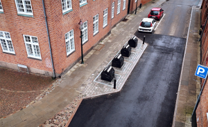Onsdag den 8. april 2026 tages de nye nedgravede affaldsbeholdere i brug i Domkirkekvarteret i Viborg midtby.