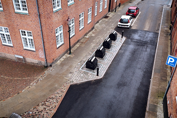 De syv nedgravede affaldsstationer i Viborg midtby skal sikre omstillingen til moderne og mere bæredygtig affaldshåndtering for alle borgere. Foto: Viborg Kommune.