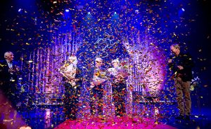 Konfettiregnen ville ingen ende tage, da de tre første legender blev fejret ved Sportsgalla 2024. Den 20. januar afsløres det, hvilke nye navne, der optages i den eksklusive klub af 'Viborg Legender'. Foto: Johnny Pedersen.